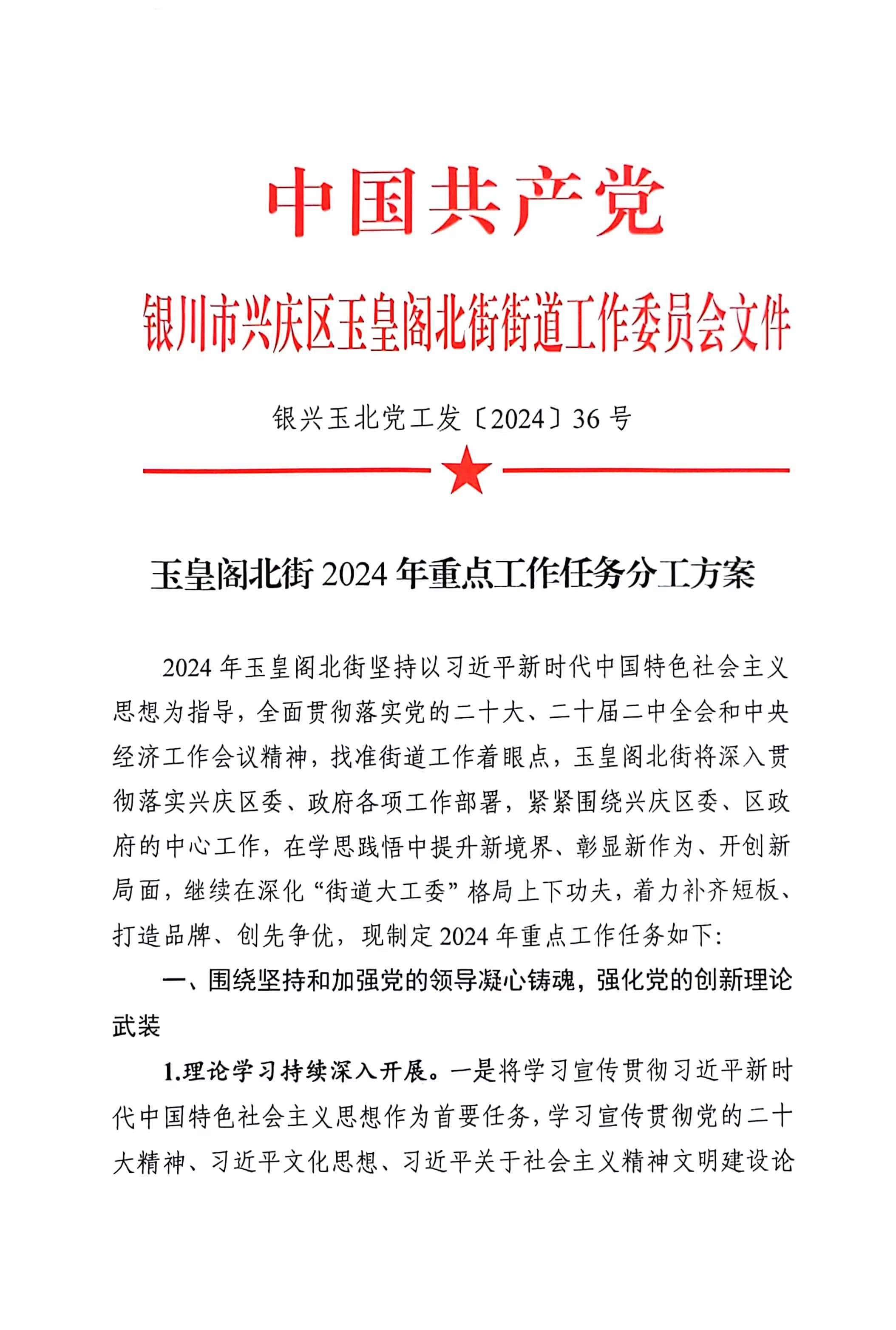 玉皇阁北街2024年重点工作任务分工方案.docx