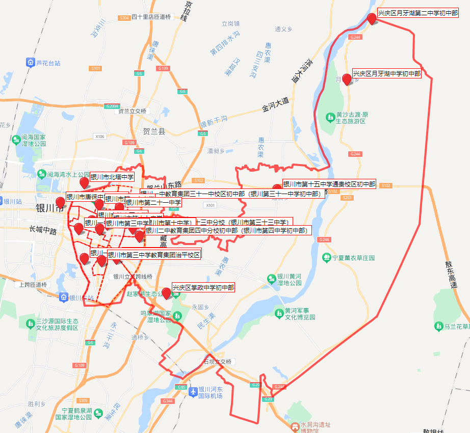 兴庆区中学点位地图:http://www.ycrxbm.cn/parent/#/map/schoolMap/type=junior
